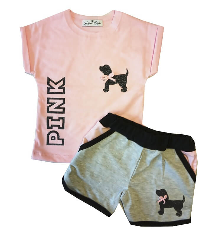 Letná súprava tričko + kraťasy ružová so sivou, veľ. 80