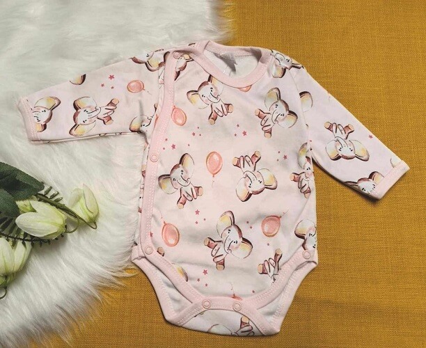Body prekladacie dlhý rukáv ružové so sloníkmi, veľ. 56Expedujeme do 24 hod. / Skladom 1 ks7,30 €/ ks